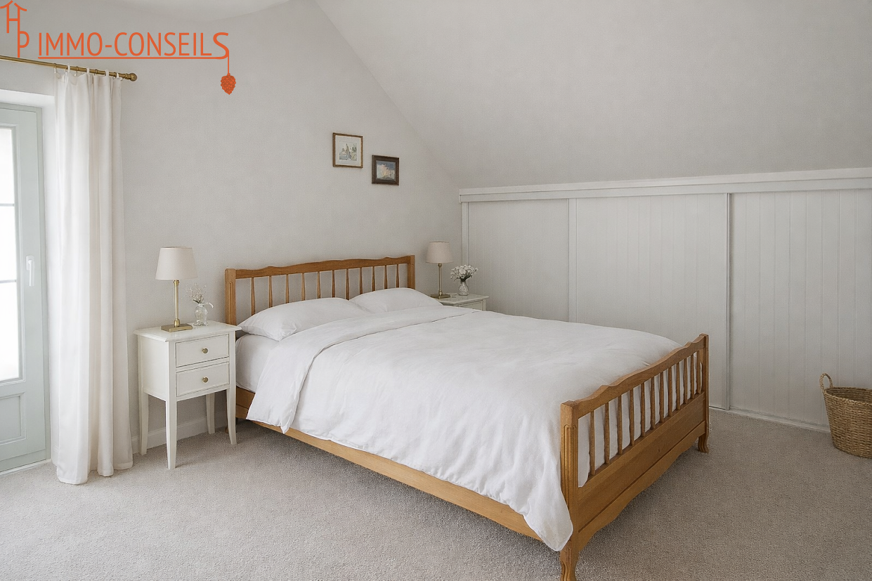 Découvrez cette longère mitoyenne située dans un hameau paisible à proximité du bourg. La maison est entourée d’un jardin arboré idéal pour profiter des beaux jours. Elle se compose d’une cuisine aménagée indépendante, pratique et fonctionnelle, d’une pièce de vie confortable de 34 m². La maison compte quatre chambres, dont une suite parentale située au rez-de-chaussée avec salle d'eau avec douche à l'italienne et WC apportant confort et praticité. Pour completer la fonctionnalité de cette maison une salle d’eau, un WC indépendant, un cellier et un grand garage attenant de 33 m² permettent stationnement et stockage. A prévoir : raffraichissement des murs et des sols une sugestion photos vous est proposée pour vous aider à vous projeter. Les atouts de cette propriété : des volumes confortables, assainissement conforme, pompe à chaleur, droit de puisage, accès PMR, propriété entièrement clôturée fermée par un portail électrique . Une belle opportunité à saisir pour une vie paisible en campagne tout en restant proche du bourg et des commodités. N’hésitez pas à nous contacter pour organiser une visite ! Frédérique PINEL (EI) Agent commercial - Numéro R.S.A.C. 942 956 970 à NANTES